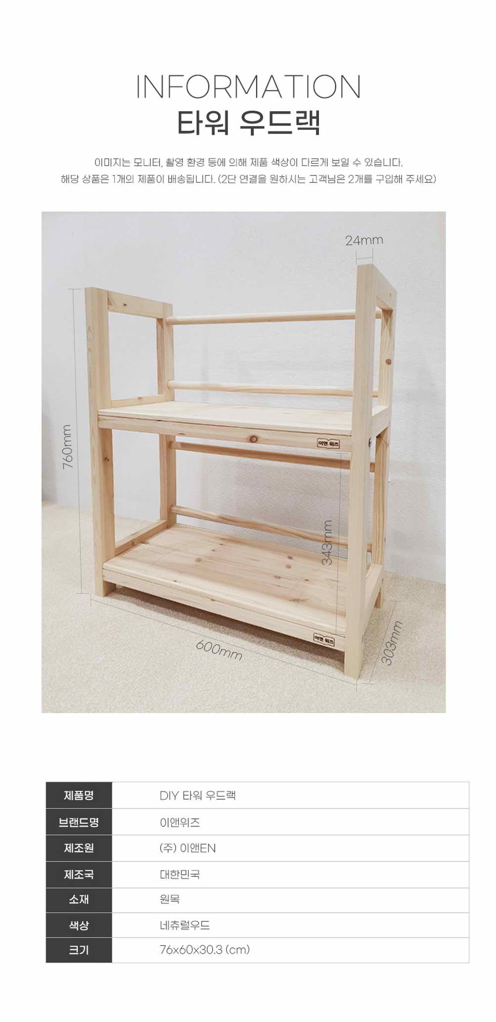 55000 ÀÌ¾Ø DIY Ÿ¿ö ¿ìµå·¢ 2´Ü 600 ¼ö³³Àå ¼±¹Ý 76x60x30.3cm - WIZ0134